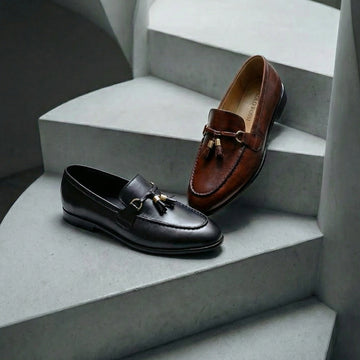 Redefine your footwear collection with these exquisite Hand-Woven Leather Tassel Loafers. Designed for the man...