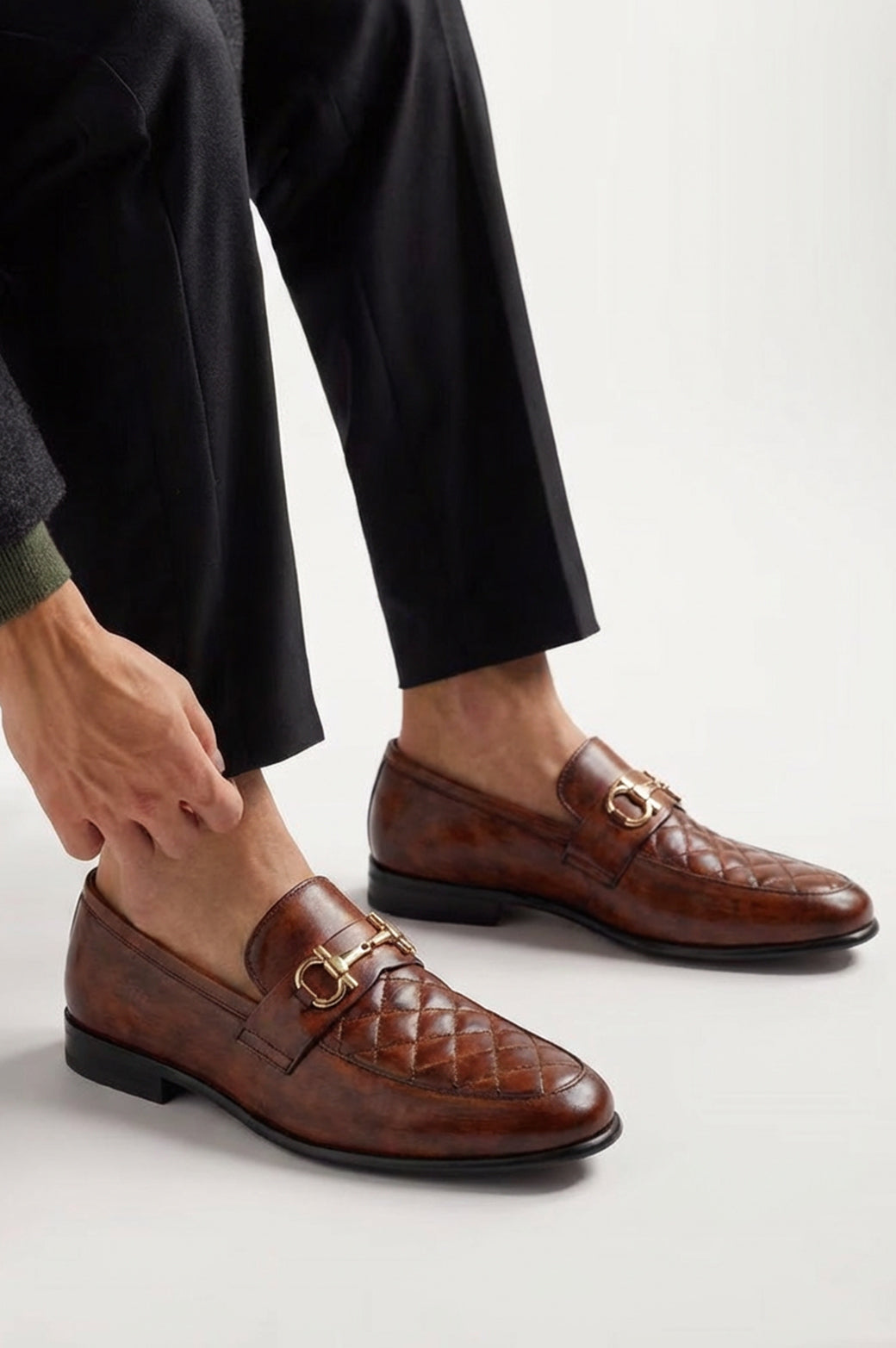 Heritage craftsmanship meets modern Italian flair. The Paolo Rossi Tan Quilted Horsebit Loafers are a...