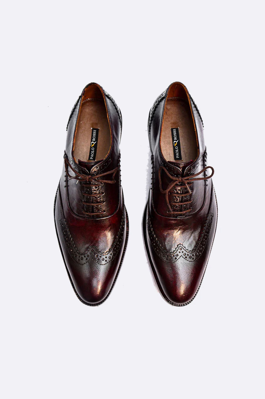 A symbol of timeless sophistication, the Paolo Rossi Handmade Wingtip Oxford Shoes are a masterclass in refined Italian shoemaking. Crafted from premium full-grain leather, this dark brown pair features a rich texture, hand-burnished shine, and precise brogue detailing that defines true elegance.