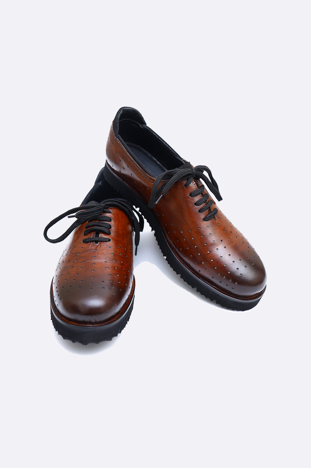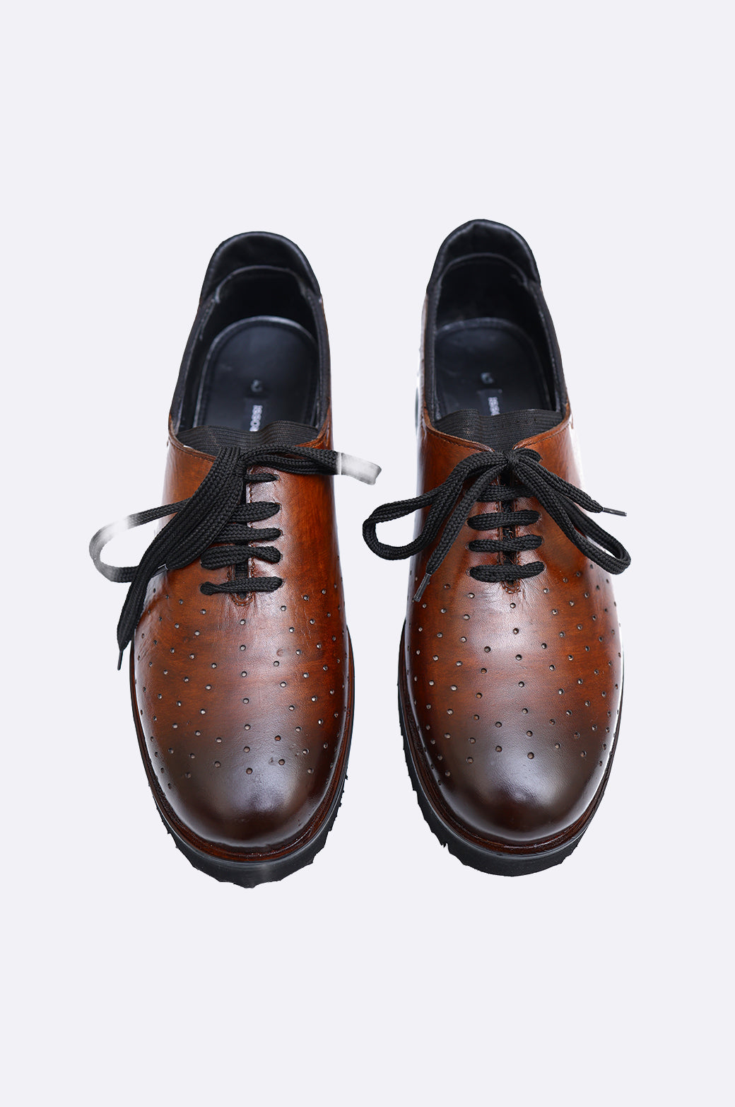 Crafted for the modern gentleman who values understated luxury, this premium leather lace-up shoe seamlessly bridges smart and casual wear. Meticulously finished in a rich burnished brown tone, the upper features refined micro-perforations that enhance breathability while adding a distinctive, contemporary character.