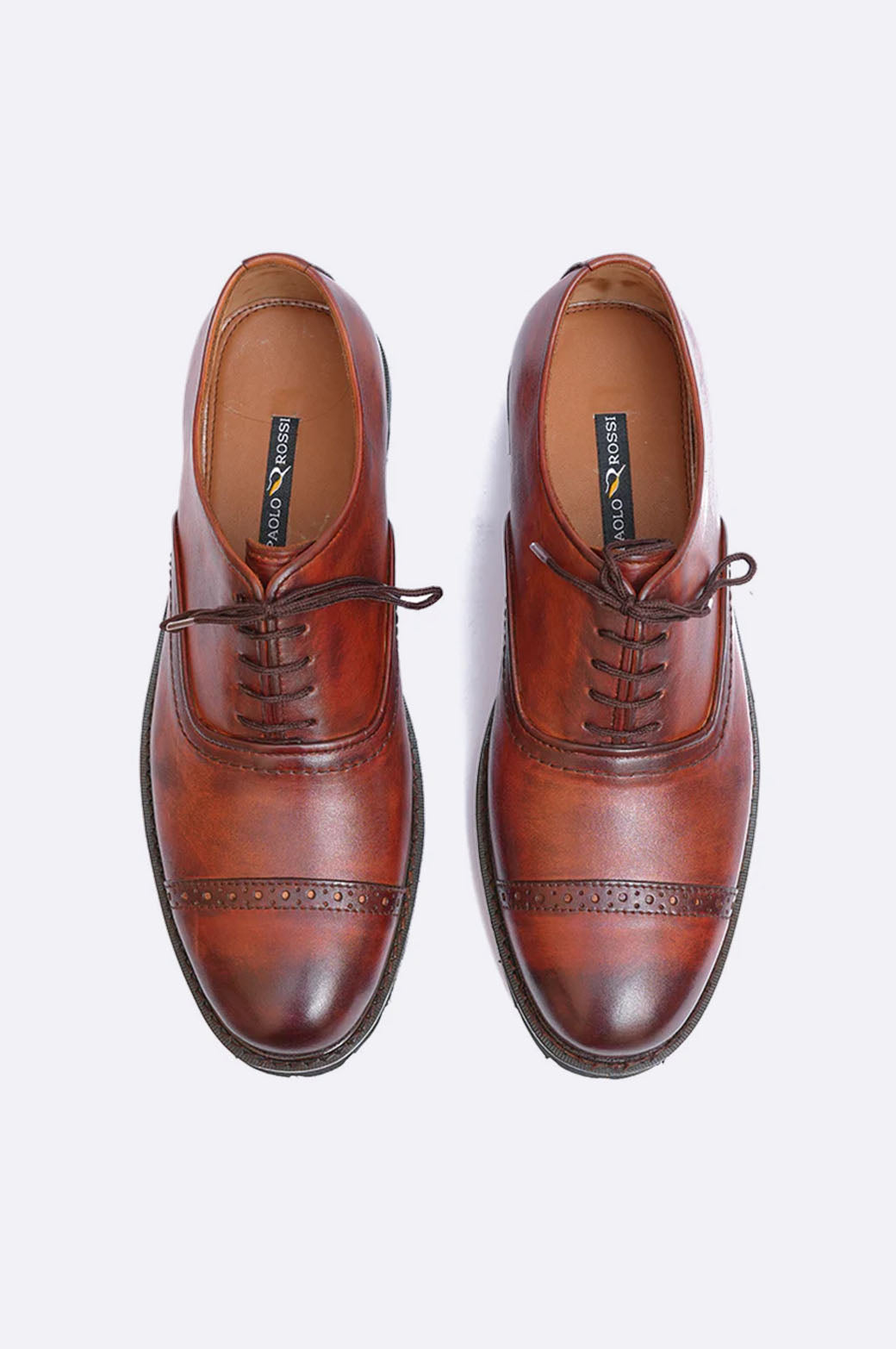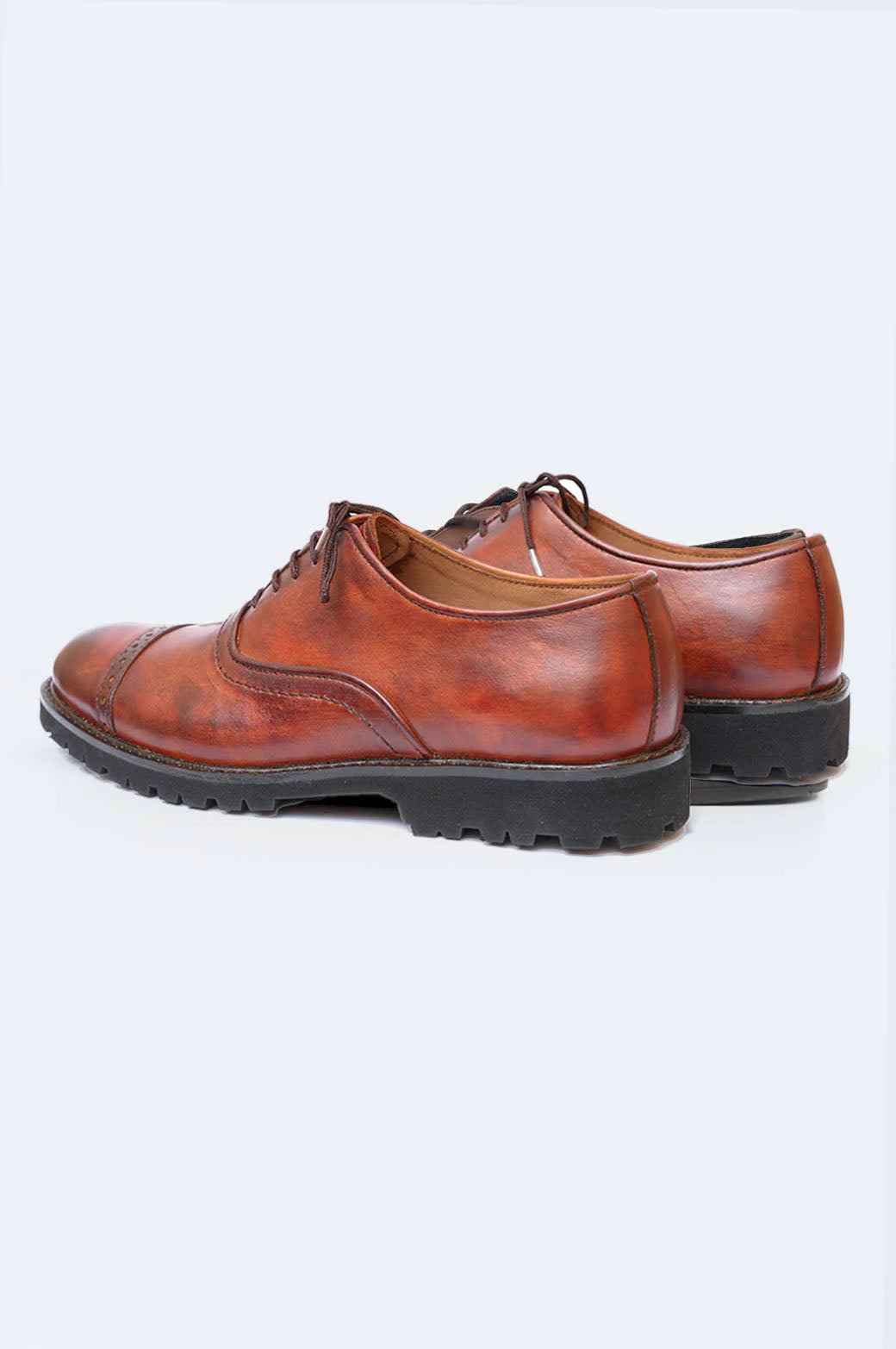 Discover the perfect balance of form and function with Paolo Rossi’s brown Oxford leather shoes with rugged sole. Crafted from premium hand-burnished leather, these shoes feature a classic cap-toe Oxford silhouette fused with a durable lug sole—offering grip, edge, and standout versatility.