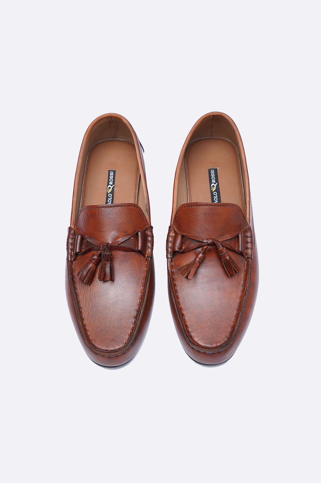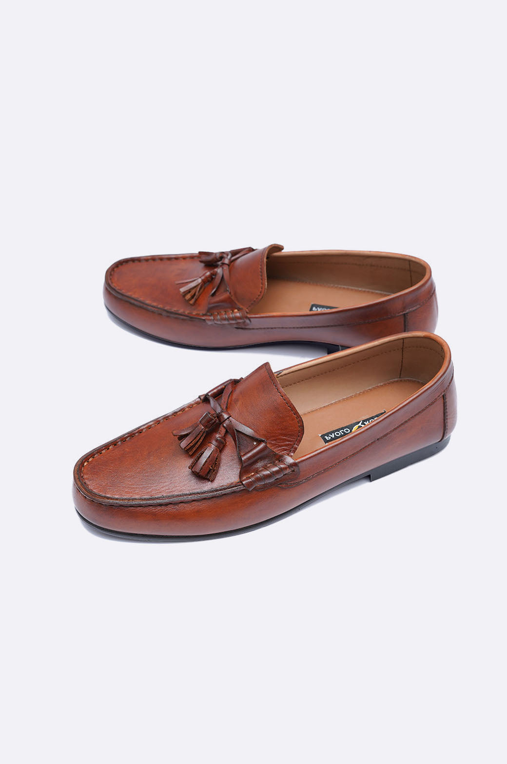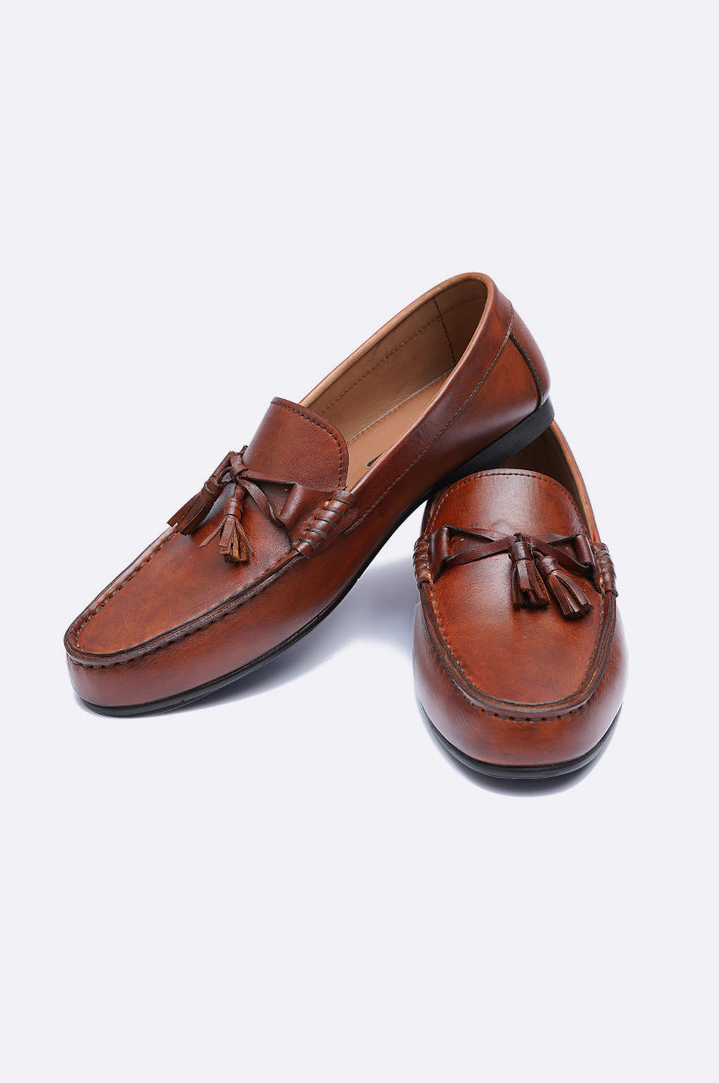 Crafted in premium tan-brown leather with dual tassels and moccasin-style stitching, these loafers are an essential for the office, brunch, or even weddings.